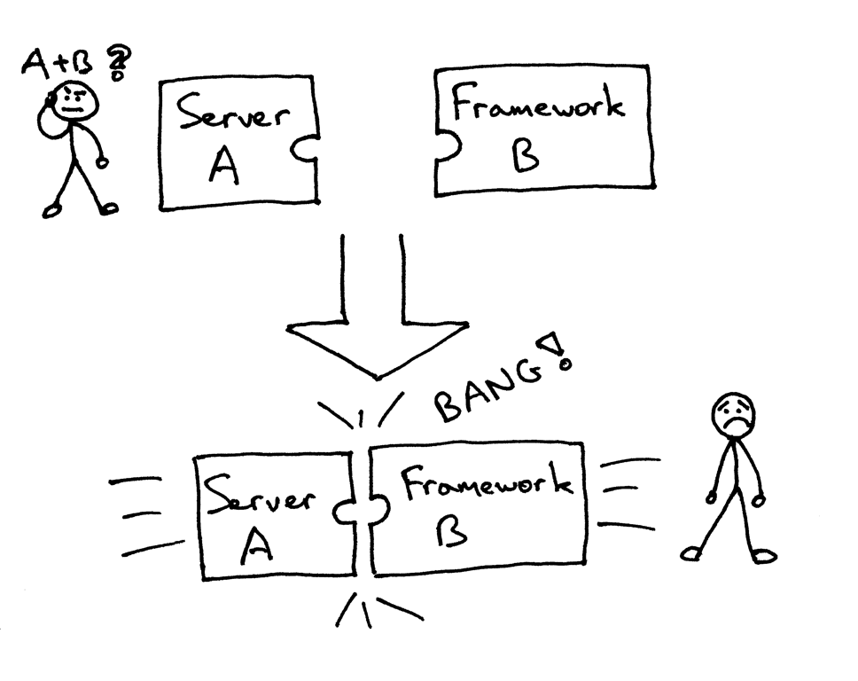 但有可能面对(或者曾有过)下面的问题,当要把一个服务器和一个架构结合起来时,却发现他们不是被设计成协同工作的: